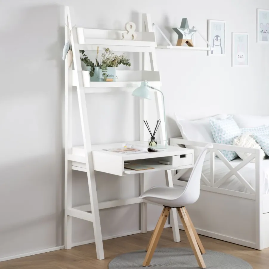 Original et pratique, voici comment nous définissons notre bureau en bois blanc avec tiroirs et étagère Bassay, qui garantit une organisation optimale pour votre espace de travail à la maison. Avec ce bureau de 120 cm de longueur x 60 cm de profondeur, comprenant deux étagères supérieures, vous aurez toujours vos accessoires de bureau bien rangés et à portée de main. Il comprend également un tiroir pour accueillir les objets que vous souhaitez tenir à l’écart des plus curieux. De plus, il dispose d’un plateau coulissant inférieur. Cette fonctionnalité vous permet de maximiser l’espace. Grâce à son design, vous pourrez facilement l’intégrer dans la pièce qui vous convient le mieux, que ce soit dans la chambre principale, la chambre d’enfant ou même dans votre salon-salle à manger.