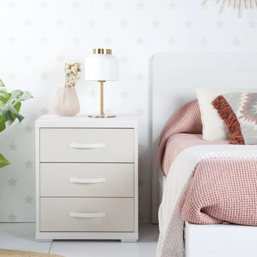 – Table de chevet avec 3 tiroirs.