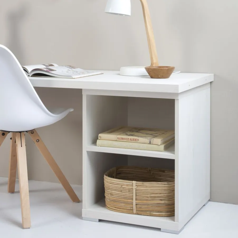 – Plateau pour bureau, avec module d’étagère et pied cylindrique en métal.