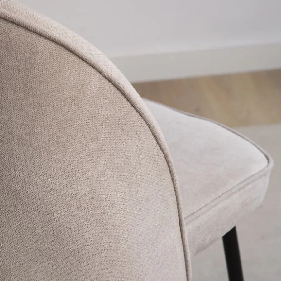 Élégante et confortable, voilà comment nous pouvons définir notre chaise Leivar, tapissée en beige. Ses pieds effilés en métal noir se marient parfaitement avec le dossier et l’assise tapissés en beige. Les formes courbes et ergonomiques de son assise et de son dossier, ainsi que son rembourrage, renforcent le confort de cette chaise, appelée à devenir l’un de ces éléments indispensables dans votre foyer.