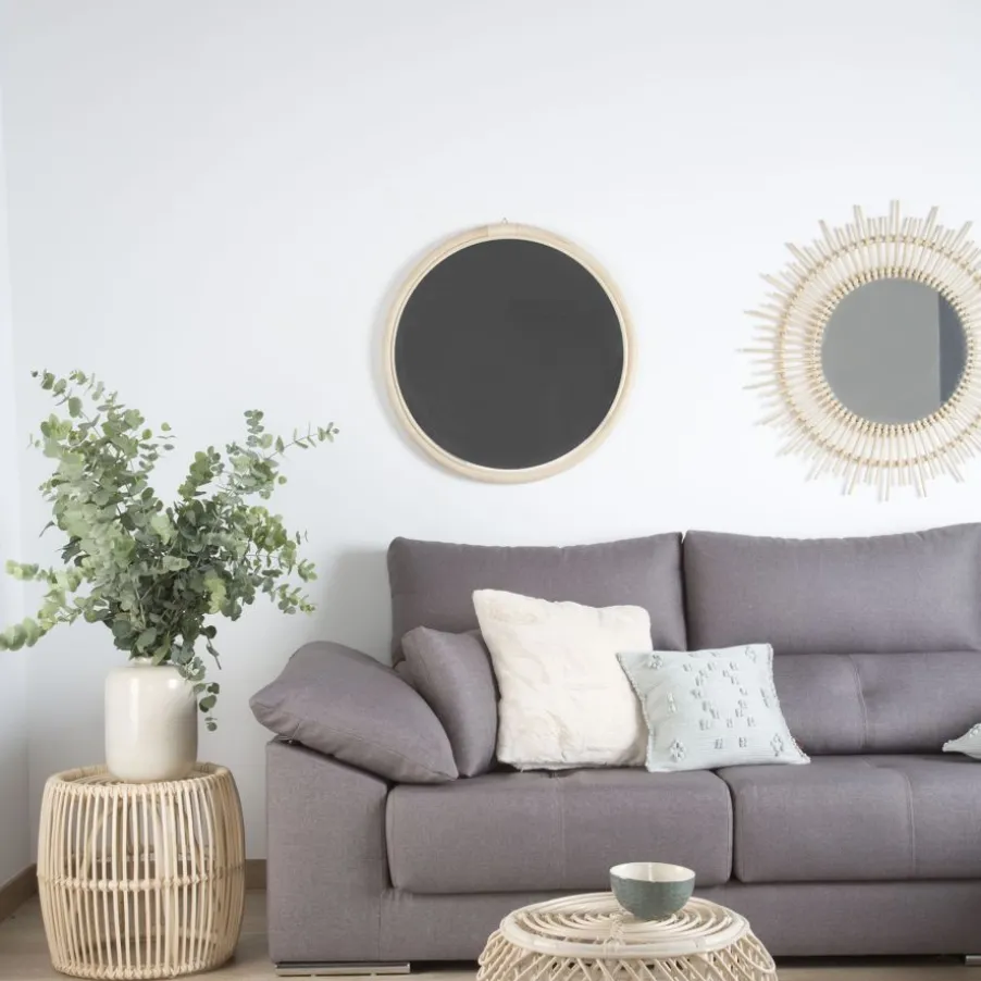 Décorez vos murs avec notre miroir rond en rotin naturel Moita et montrez votre bon goût chez vous. Le miroir, qui mesure 70 cm de diamètre, sera parfait pour apporter une luminosité supplémentaire dans les pièces de votre choix. En plus d’être le complément décoratif parfait pour vos murs. Qu’attendez-vous pour l’emmener chez vous ?