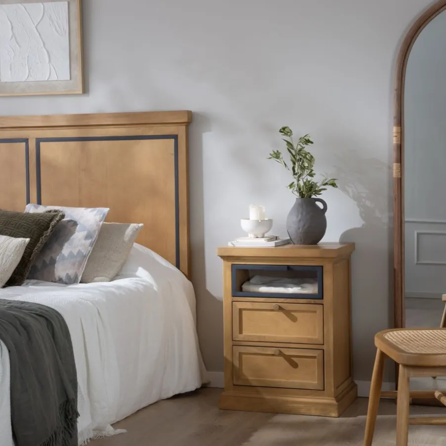 Dis oui au bois naturel avec cette table de chevet, si tu aimes le style rustique chic avec certaines touches tendance. À travers le métal qui définit le périmètre et la poignée du tiroir supérieur ainsi que les lignes épurées de son design, cette table de chevet devient l’une de nos propositions les plus élégantes. De plus, le fait que le devant du tiroir supérieur soit en verre crée un jeu visuel très attrayant. En termes de fonctionnalité, elle t’offrira un bon espace de rangement supplémentaire à côté de ton lit, grâce à ses 3 tiroirs. Opte pour cette table de chevet de 52 cm de long, 40 cm de profondeur et 69 cm de hauteur et profite d’un meuble qui ne laissera personne indifférent.