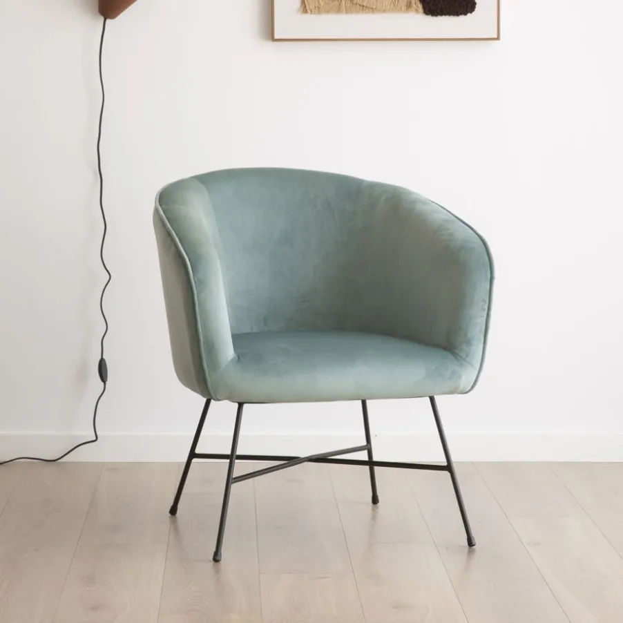 Sigrid Fauteuil en velours vert d’eau