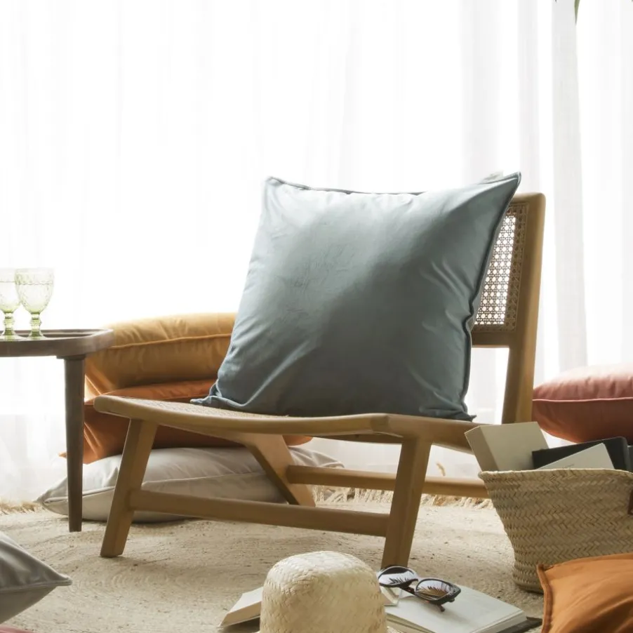 Vela Coussin décoratif en velours pour canapé de couleur bleue