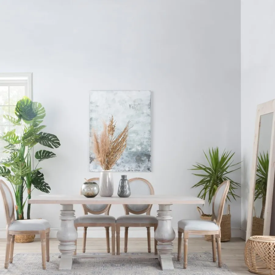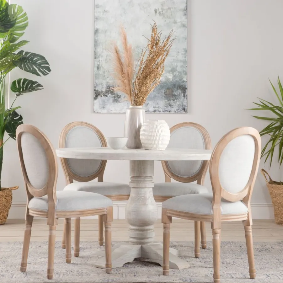 La chaise rembourrée en gris Victoria d’inspiration rétro arrive pour apporter style et élégance à votre salle à manger. Le fait que le dossier et le siège soient rembourrés rendent l’assise confortable et agréable. La structure de la chaise est en bois, ce qui lui confère une grande résistance et durabilité. La finition en bois patiné blanc laisse entrevoir le grain du bois naturel. Son dossier courbé et les formes sculptées qui parcourent les pieds en bois sont les détails principaux qui donnent du caractère à cette chaise de 48x46x96 cm.